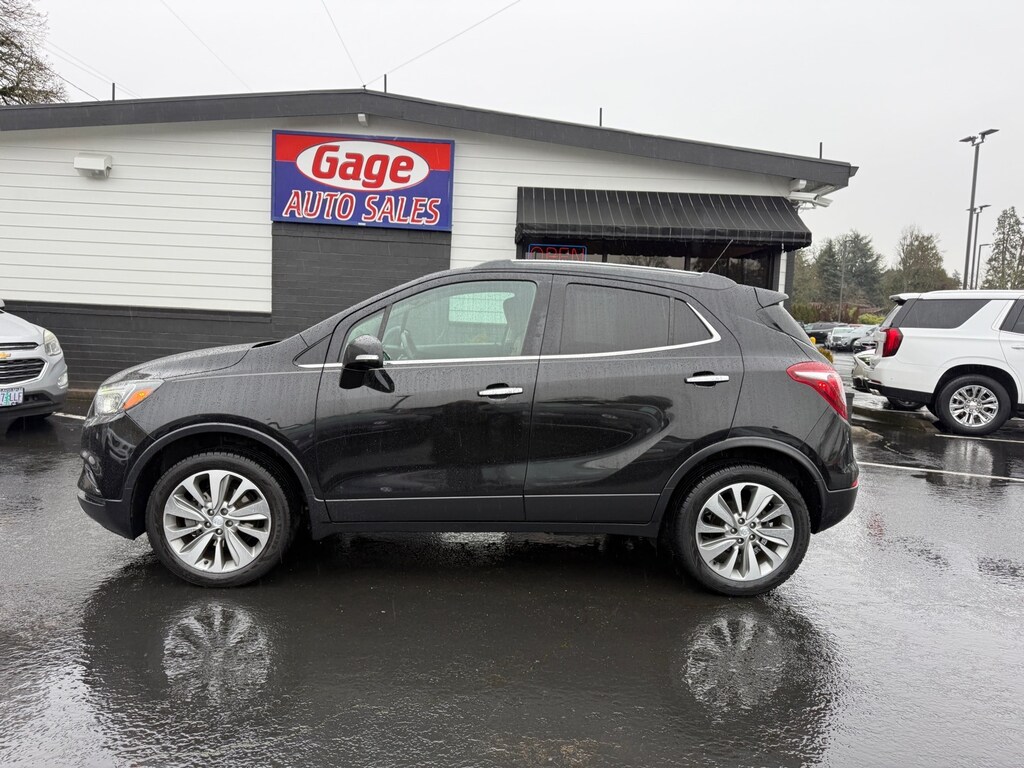 This 2017 Buick Essence 4dr Crossover, Encore is a vehicle that is sure to turn heads. With its all-wheel drive, 1.4 liter Ecotec Turbo I4 138hp 148 lb-ft engine, and sequential multiport fuel injection, this car has plenty of power to get you where you need to go. It has an ebony twilight metallic exterior and a shale w/ebony accents interior that make it stand out from the crowd. It has 108,836 miles on it and a crash test rating of 5 out of 5 stars, so you can be sure that it is safe and reliable. The car also comes with a crash test rating of 5 out of 5 stars, so you can be sure that it is safe and reliable. Additionally, this car has many features such as touch screen display, Bluetooth audio connection, blind spot sensor, on demand four wheel drive, Apple Carplay ready, Bluetooth phone connectivity, and leather-trimmed seats. This car is sure to turn heads wherever it goes! Contact Details: Gage Auto Sales, 13432 SE McLoughlin Blvd., Milwaukie, OR, 97222, sales@gageauto.dealerspace.com, (888) 205-6257.