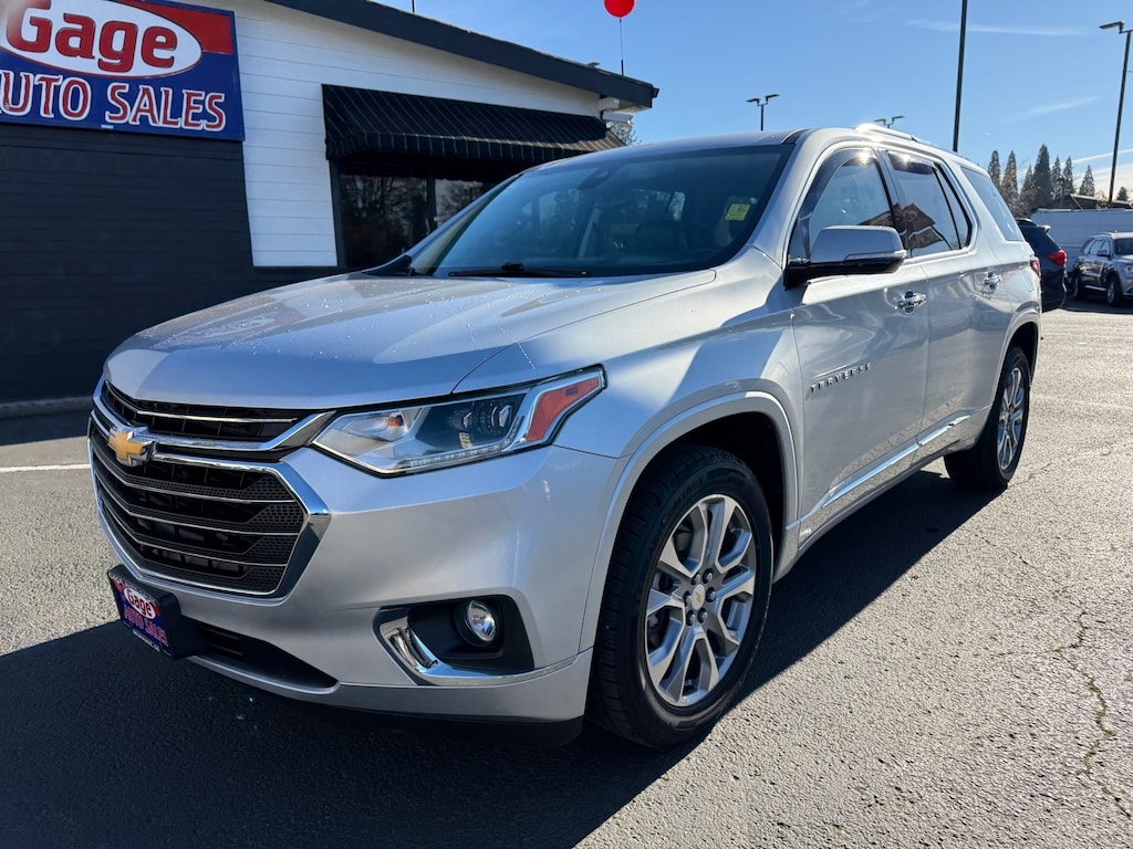 This 2018 Chevrolet Traverse Premier 4x4 SUV is a vehicle that is sure to turn heads. Boasting a silver ice metallic exterior and jet black interior, this car has low mileage with 62,339 miles and a 3.6 liter V6 310hp 266 lb-ft engine with direct injection. It has a crash test rating of 5 out of 5 stars and features such as touch screen display, Bluetooth audio connection, blind spot sensor, part time four wheel drive, Apple Carplay ready, navigation system with voice recognition, and navigation with touch screen display. It also has a fuel economy of 17 mpg in the city and 25 mpg on the highway. This car has been meticulously maintained and comes with a carfax report available for your review. Don't miss out on this amazing opportunity to own a reliable and luxurious car! Contact Details: Gage Auto Sales, 13432 SE McLoughlin Blvd., Milwaukie, OR, 97222, sales@gageauto.dealerspace.com, (888) 205-6257.