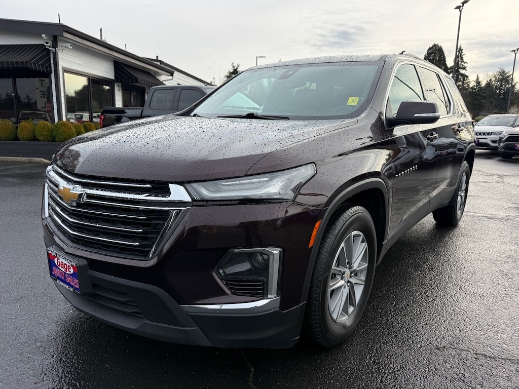 This 2022 Chevrolet Traverse LT Leather is a vehicle that is sure to turn heads. Boasting a black cherry metallic exterior and jet black interior, this 4x4 3.6 liter V6 310hp 266 lb-ft engine direct injection motorcar has low mileage with 32,126 miles. It also has a fuel economy of 17 mpg in the city and 25 mpg on the highway, making it an economical choice for those looking to save on gas. Safety features include a crash test rating of 5 out of 5 stars and additional features such as touch screen display, Bluetooth audio connection, blind spot sensor, part time four wheel drive, Bluetooth phone connectivity, and leather-trimmed seats. This carfax report available vehicle is sure to turn heads and provide years of reliable service. Contact Details: Gage Auto Sales, 13432 SE McLoughlin Blvd., Milwaukie, OR, 97222, sales@gageauto.dealerspace.com, (888) 205-6257.