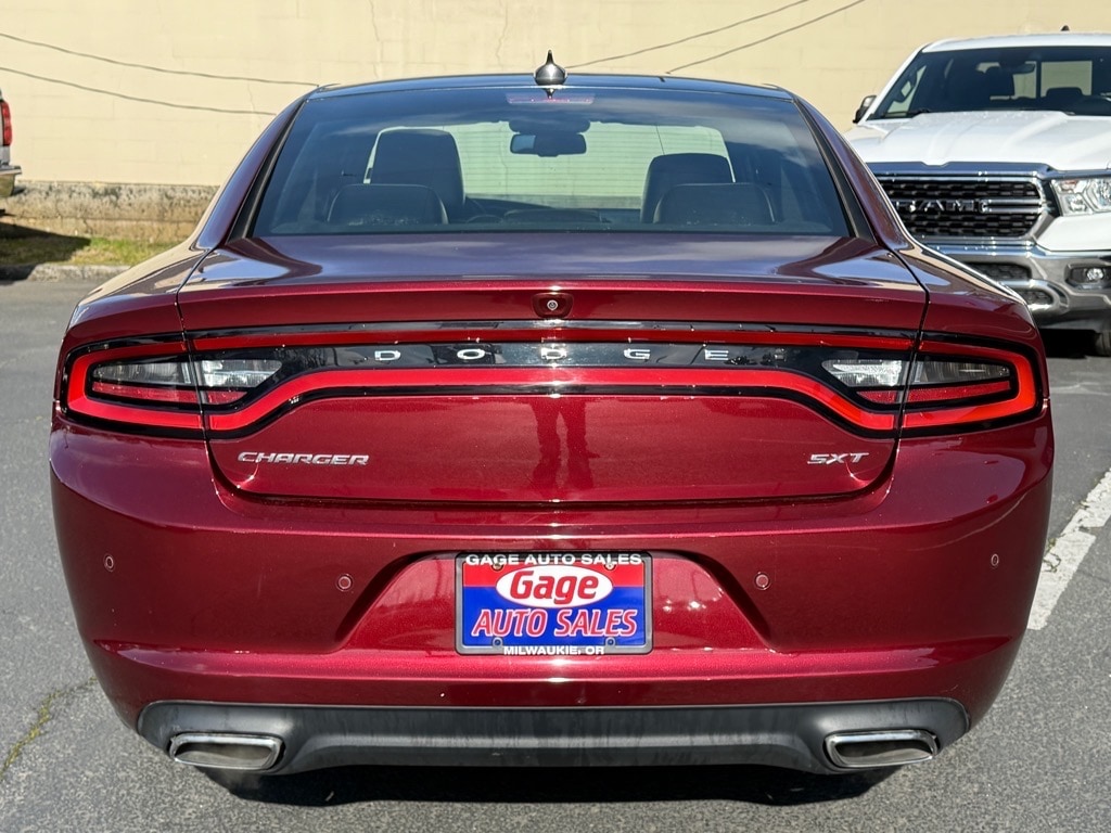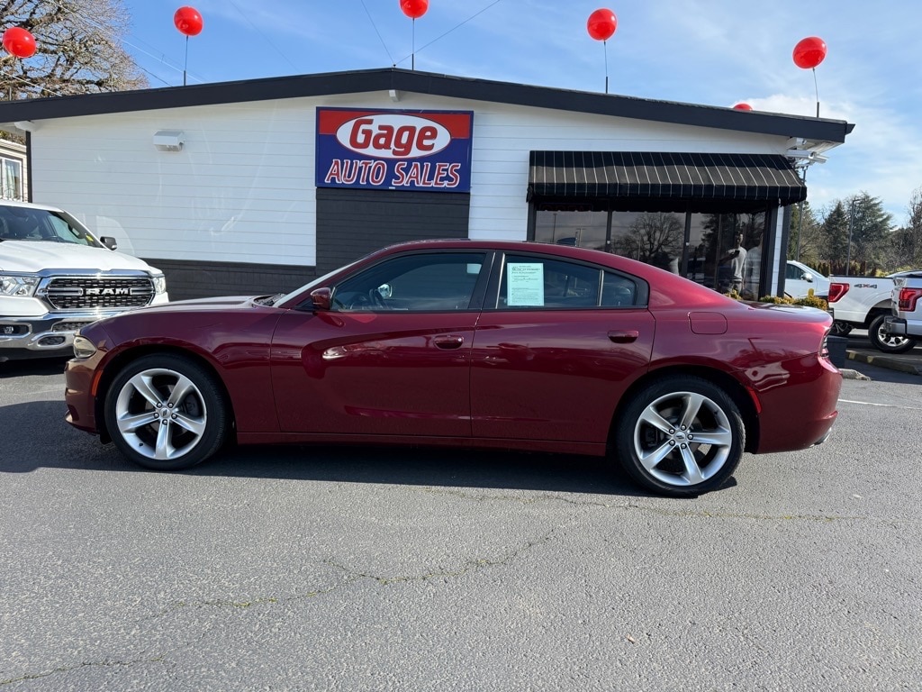 This 2018 Dodge Charger SXT Plus 4dr Sedan with Leather is a great option for those looking for a reliable and powerful vehicle. It has a 3.6L Pentastar V6 292hp 260 lb-ft engine with sequential multiport fuel injection, and has driven 75,849 miles. It has a dk. red exterior and a black interior, giving it a sleek and modern look. It has a crash test rating of 5 out of 5 stars and features such as touch screen display, Bluetooth audio connection, blind spot sensor, hill start assist, Apple Carplay ready, Bluetooth phone connectivity, and premium leather seats. This car has great fuel economy of 19 mpg in the city and 30 mpg on the highway, making it an economical choice for those looking for a reliable ride. It also comes with a Carfax report available for your peace of mind. Contact Details: Gage Auto Sales, 13432 SE McLoughlin Blvd., Milwaukie, OR, 97222, sales@gageauto.dealerspace.com, (888) 205-6257.