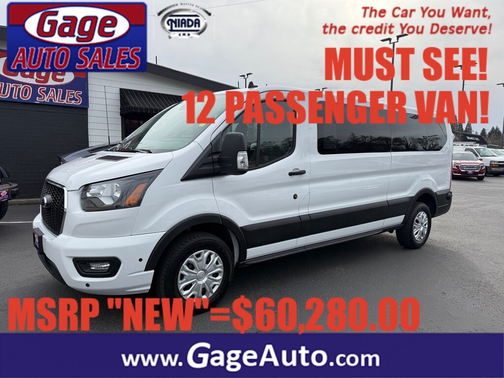 This vehicle is a 2024 Ford Transit 350 XLT with a direct injection 3.5 liter EcoBoost Twin Turbo V6 310hp 400 lb-ft engine, and an oxford white (yz) exterior. It has driven 34,989 miles and has a crash test rating of 4 out of 5 stars. It also features a dark palazzo gray (ck) interior, touch screen display, Bluetooth audio connection, blind spot sensor, hill start assist, navigation system with voice recognition, navigation with touch screen display, Bluetooth phone connectivity, and a crash test rating of 4 out of 5 stars. This car is sure to turn heads on the road and provide you with the ultimate driving experience! Contact Details: Gage Auto Sales, 13432 SE McLoughlin Blvd., Milwaukie, OR, 97222, sales@gageauto.dealerspace.com, (888) 205-6257.