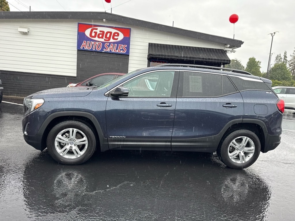This 2018 GMC Terrain SLE 4x4 Vehicle is a great choice for those looking for a reliable and efficient motorcar. With a blue steel metallic exterior and jet black interior, this car has a sleek and modern look that will turn heads. It has driven 93,647 miles and comes with a crash test rating of 4 out of 5 stars. Under the hood, this Vehicle is powered by a 1.5 liter Turbo I4 170hp 203 lb-ft engine with direct injection, providing excellent fuel economy in city (24 mpg) and highway (28 mpg). It also comes with a touch screen display, Bluetooth audio connection, hill start assist, part time four wheel drive, Apple Carplay ready, and Bluetooth phone connectivity. This carfax report is available for your convenience as well. With its many features and impressive crash test rating, this Vehicle is sure to please! Contact Details: Gage Auto Sales, 13432 SE McLoughlin Blvd., Milwaukie, OR, 97222, sales@gageauto.dealerspace.com, (888) 205-6257.