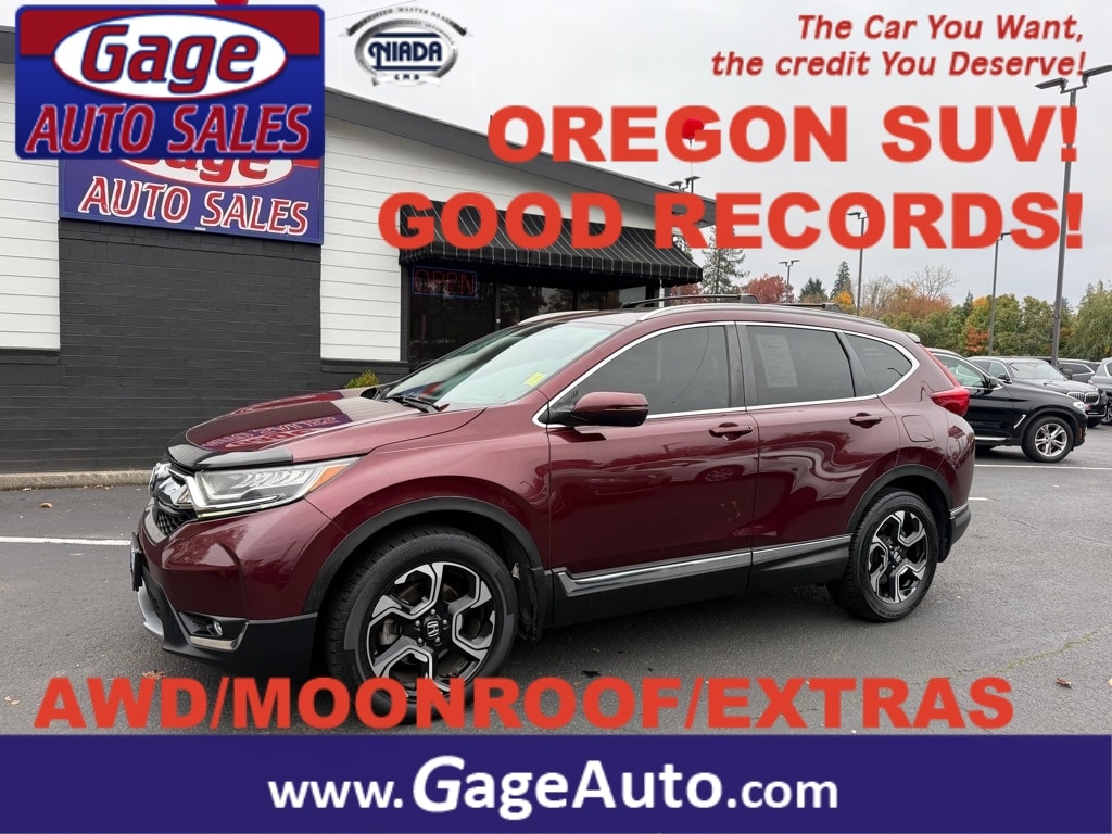 This 2018 Honda CR-V Touring SUV is a reliable and powerful all-wheel drive vehicle. With a 1.5 liter Turbo I4 190hp 179 lb-ft engine and direct injection, it has a basque red pearl ii exterior and a gray interior. It has driven 102,326 miles and offers fuel economy in city of 27 mpg and on highway of 33 mpg. It also comes with features such as touch screen display, Bluetooth audio connection, blind spot sensor, hill start assist, on demand four wheel drive, Apple Carplay ready, navigation system with voice recognition, and Bluetooth phone connectivity. This car has been meticulously maintained and comes with a carfax report available for your review. Contact Details: Gage Auto Sales, 13432 SE McLoughlin Blvd., Milwaukie, OR, 97222, sales@gageauto.dealerspace.com, (888) 205-6257.
