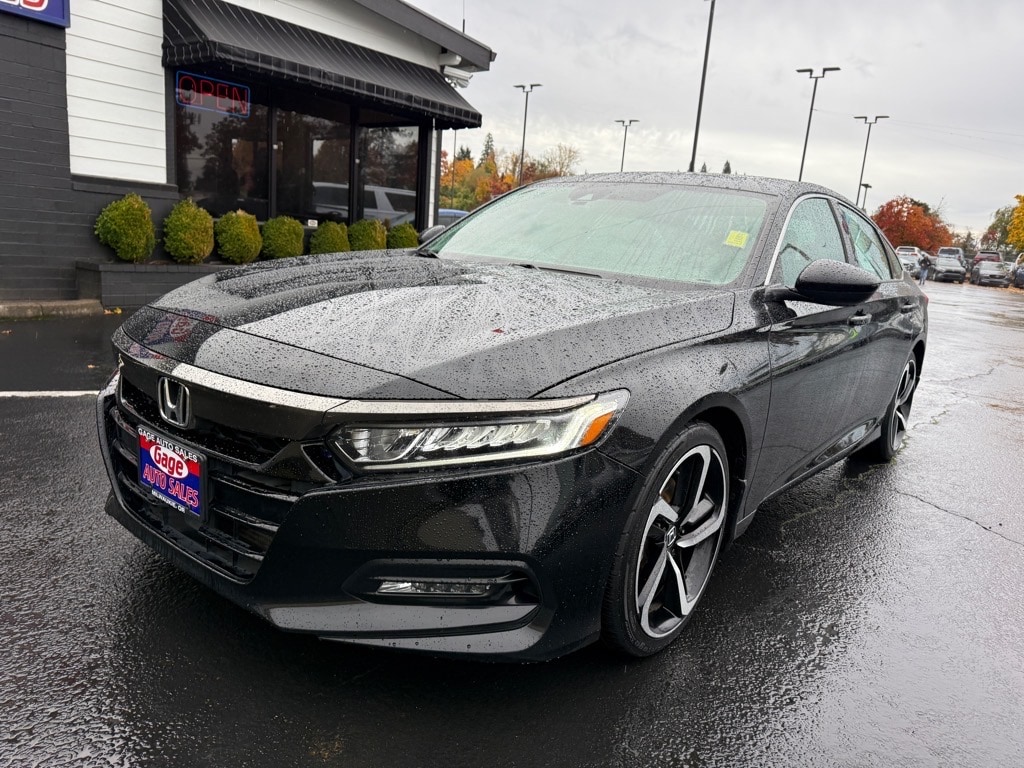 This 2019 Honda Accord Sport 4dr Sedan (2.0T I4 10A) is a reliable and efficient motorcar that has been meticulously maintained. With a crystal black pearl exterior and black interior, this car has been driven 96,433 miles and is sure to turn heads wherever it goes. It comes equipped with a 2.0 liter Turbo I4 252hp 273 lb-ft engine, direct injection, and FWD capabilities, giving it a fuel economy of 22 mpg in the city and 32 mpg on the highway. The car also features a touch screen display, Bluetooth audio connection, blind spot sensor, hill start assist, Apple Carplay ready, and Bluetooth phone connectivity for added convenience. Whether you're looking for a reliable commuter or a stylish ride, this car has it all! Contact Details: Gage Auto Sales, 13432 SE McLoughlin Blvd., Milwaukie, OR, 97222, sales@gageauto.dealerspace.com, (888) 205-6257.