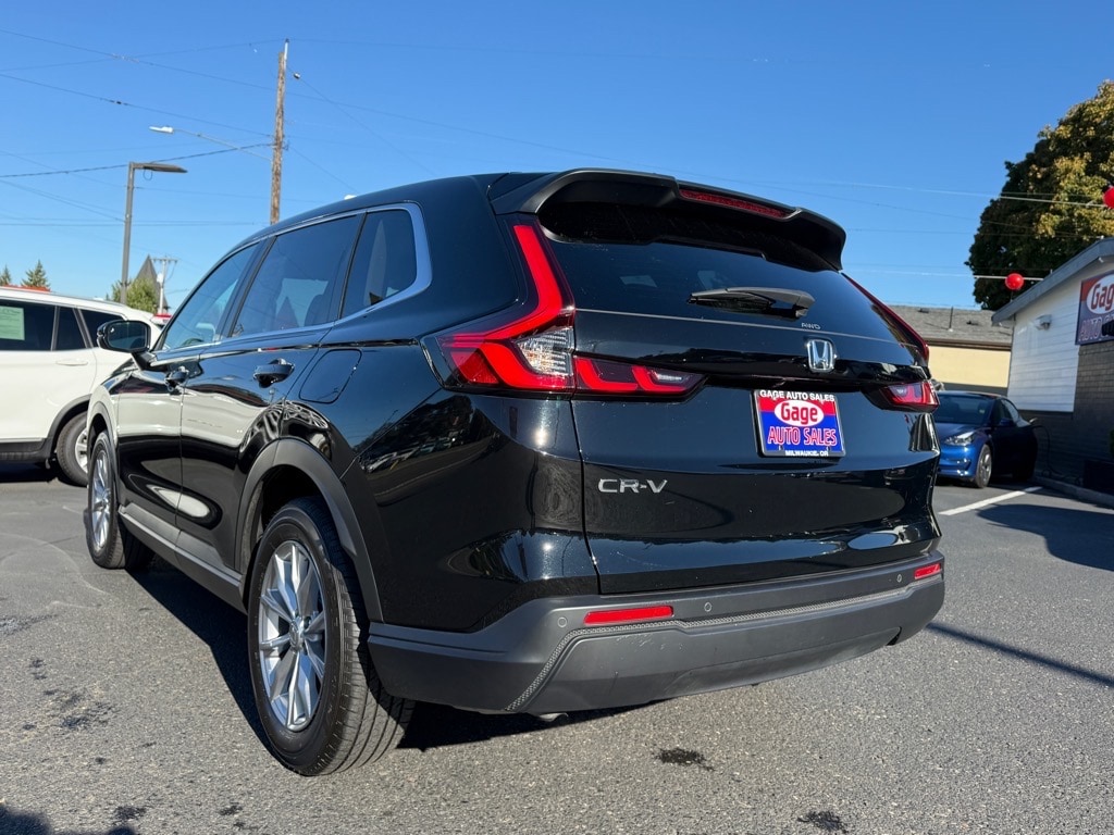 This 2025 Honda CR-V EX-L 4dr SUV is a vehicle that is sure to turn heads. With its all wheel drive, 1.5 liter Turbo I4 190hp 179 lb-ft engine, and direct injection, it has plenty of power to get you where you need to go. The crystal black pearl exterior is sure to turn heads as well, while the black interior provides a luxurious feel. This car has driven 10,474 miles and comes with a Carfax report available for your review. The CR-V also offers fuel economy in city 26 mpg and highway 31 mpg, making it an economical choice for your daily commute. Other features include touch screen display, Bluetooth audio connection, blind spot sensor, hill start assist, on demand four wheel drive, Bluetooth phone connectivity, and leather-trimmed seats for added comfort. This 2025 Honda CR-V EX-L 4dr SUV is the perfect car for anyone looking for a reliable and stylish ride. Contact Details: Gage Auto Sales, 13432 SE McLoughlin Blvd., Milwaukie, OR, 97222, sales@gageauto.dealerspace.com, (888) 205-6257.