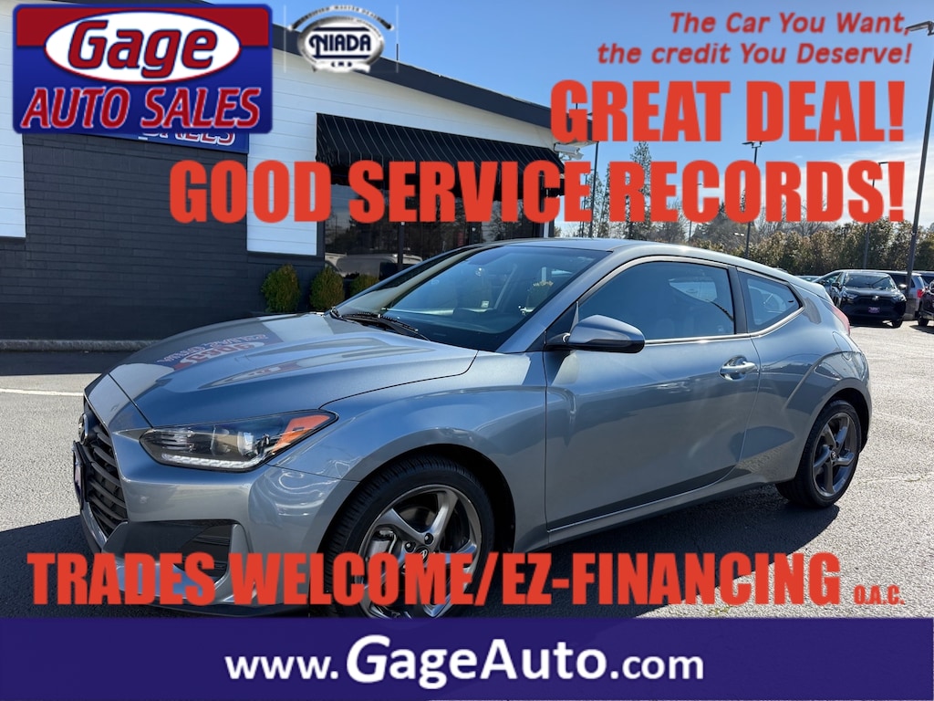 This vehicle is a 2019 Hyundai Veloster with a FWD 2.0L Nu I4 147hp 132 lb-ft engine and sequential multiport fuel injection. It has a thunder gray/black exterior and a black interior. It has 85,595 miles and is powered by an efficient FWD 27 mpg city/34 mpg highway fuel economy. It also comes with a black touch screen display, Bluetooth audio connection, Apple Carplay ready, and Bluetooth phone connectivity. This car has been meticulously maintained and is ready for its next owner to enjoy! Contact Details: Gage Auto Sales, 13432 SE McLoughlin Blvd., Milwaukie, OR, 97222, sales@gageauto.dealerspace.com, (888) 205-6257.