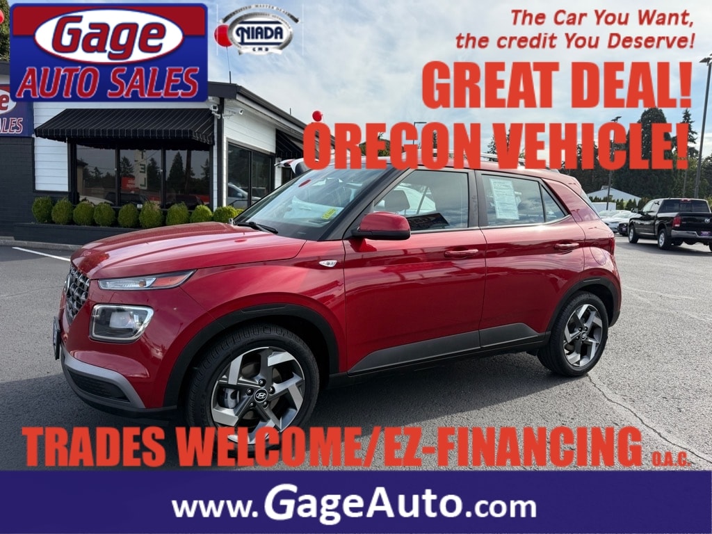 This 2021 Hyundai SEL 4dr Crossover Vehicle is a great choice for those looking for a reliable and safe ride. With a 1.6 liter Gamma I4 121hp 113 lb-ft engine, direct injection, and FWD, this car has plenty of power to get you where you need to go. It has a scarlet red pearl exterior and a gray interior that are both comfortable to sit in. It has 71,465 miles on it and a crash test rating of 4 out of 5 stars, so you can be sure that it will hold up to any bumps and bruises you may encounter on the road. Additionally, this Vehicle comes with a carfax report available for your convenience. With its fuel economy in city 30 mpg and fuel economy on highway 33 mpg, you can be sure that you are getting the most bang for your buck when it comes to your car's performance. With its touch screen display, Bluetooth audio connection, blind spot sensor, hill start assist, and Bluetooth phone connectivity, this Vehicle has all the modern features you need to stay connected while on the go! Contact Details: Gage Auto Sales, 13432 SE McLoughlin Blvd., Milwaukie, OR, 97222, sales@gageauto.dealerspace.com, (888) 205-6257.