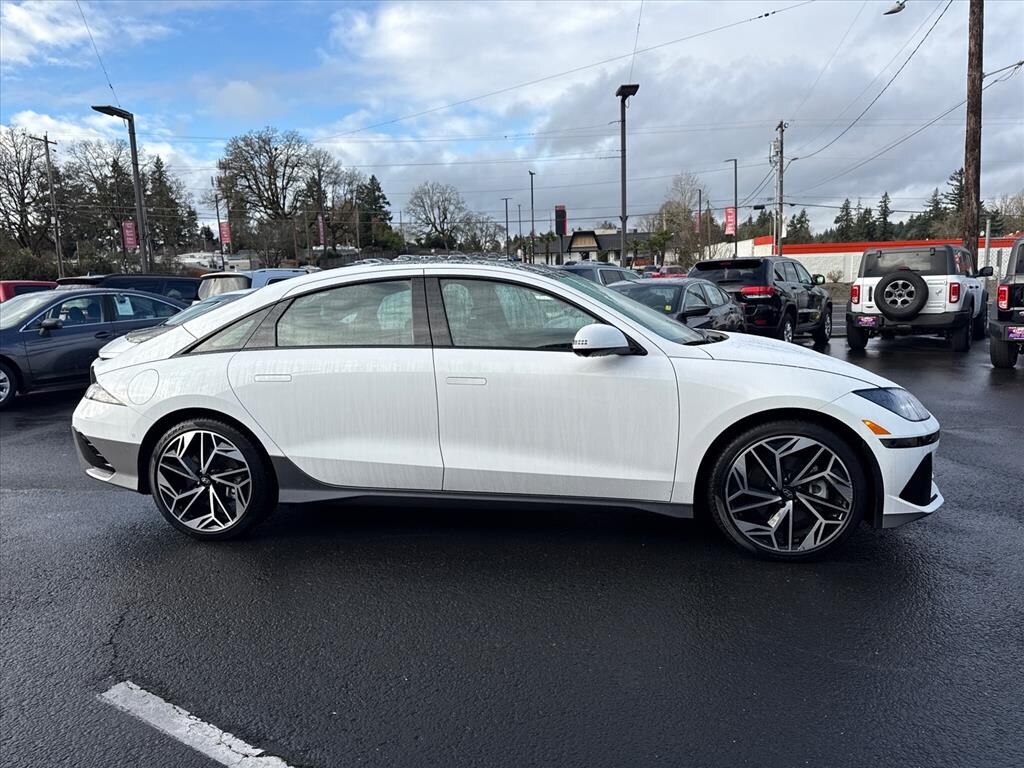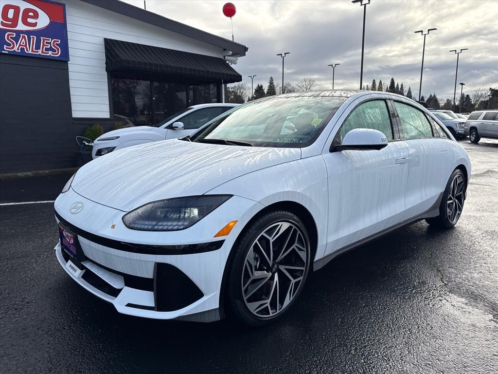 This vehicle is a Hyundai IONIQ 6 Limited, made in 2023, with a low mileage of 20,014 miles. It has an all wheel drive Electric 320hp 446 lb-ft engine and a serenity white pearl exterior. It has a black interior and a crash test rating of 5 out of 5 stars. This car has many features including touch screen display, Bluetooth audio connection, blind spot sensor, hill start assist, full time four wheel drive, Apple Carplay ready, navigation system with voice recognition, and navigation with touch screen display. It also has a black leather interior with a fuel economy of 130 mpg in the city and 111 mpg on the highway. This car is sure to turn heads with its sleek design and impressive performance. Contact Details: Gage Auto Sales, 13432 SE McLoughlin Blvd., Milwaukie, OR, 97222, sales@gageauto.dealerspace.com, (888) 205-6257.