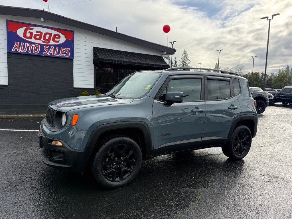 This 2018 Jeep Renegade Altitude Vehicle is a certified pre-owned automobile with a low mileage of 63,978 miles. It is powered by a 1.4 liter Turbo I4 160hp 184 lb-ft engine with sequential multiport fuel injection, and has a granite crystal metallic clear coat exterior. It has a black interior and a fuel economy of 24 mpg in the city and 31 mpg on the highway. Vehicle safety is also taken into consideration with a crash test rating of 4 out of 5 stars. Vehicle features include touch screen display, Bluetooth audio connection, hill start assist, on demand four wheel drive, Apple Carplay ready, and Bluetooth phone connectivity. This car also comes with a carfax report available for your convenience. Contact Details: Gage Auto Sales, 13432 SE McLoughlin Blvd., Milwaukie, OR, 97222, sales@gageauto.dealerspace.com, (888) 205-6257.