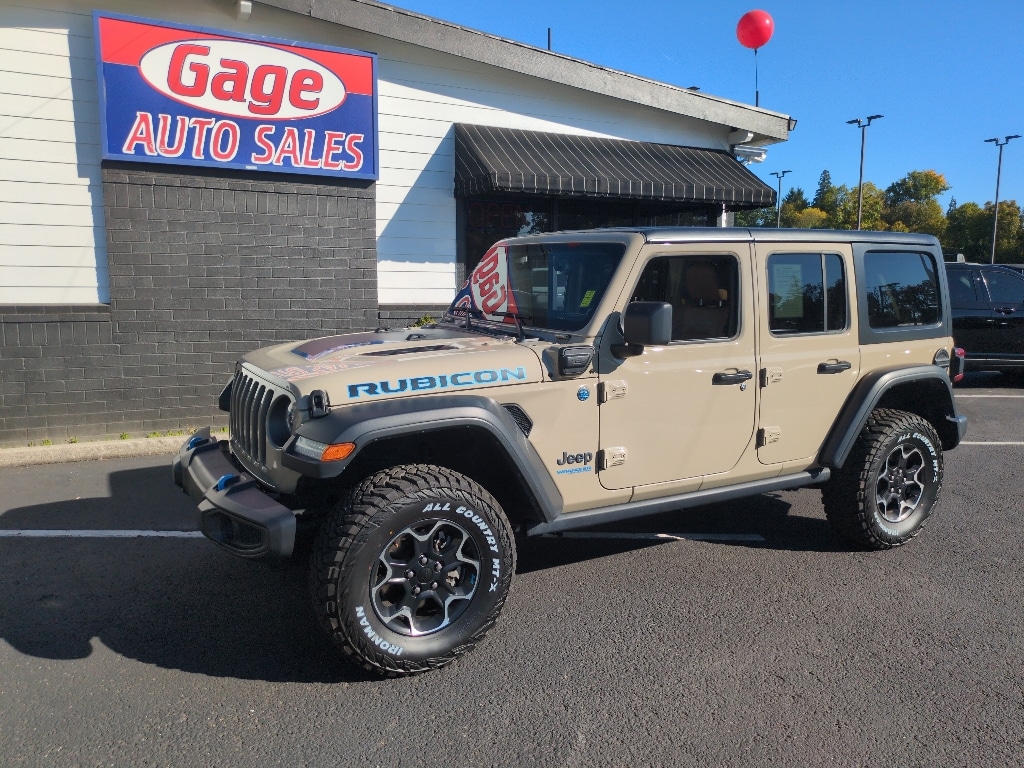 This 2022 Jeep Wrangler Unlimited Rubicon 4xe 4dr SUV is a certified pre-owned vehicle with a carfax report available. It has driven 36,502 miles and features a 2.0 liter Plug-in Hybrid Turbo I4 375hp 470 lb-ft engine with direct injection, part time with on demand four wheel drive, and Apple Carplay ready touch screen display, Bluetooth audio connection, hill start assist, and leather-trimmed bucket seats. Other features include navigation system with voice recognition, and Bluetooth phone connectivity. This car is sure to turn heads on the road! Contact Details: Gage Auto Sales, 13432 SE McLoughlin Blvd., Milwaukie, OR, 97222, sales@gageauto.dealerspace.com, (888) 205-6257.