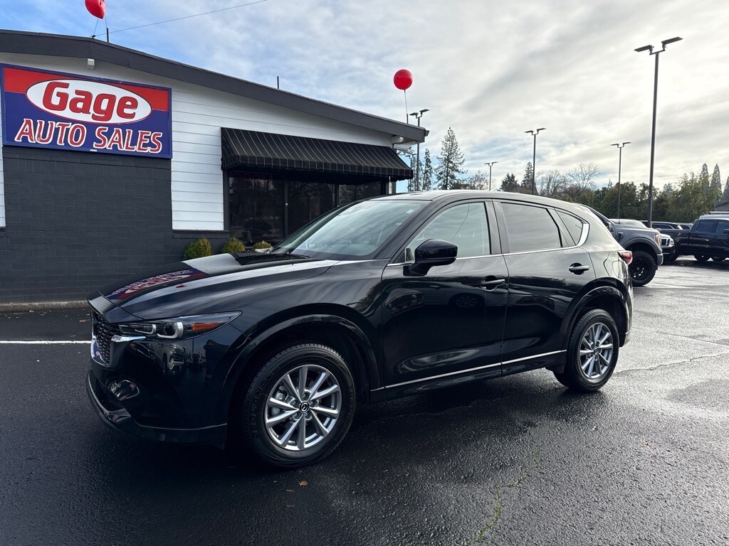 This 2025 Mazda CX-5 Select 4dr SUV is a vehicle that has been meticulously maintained and driven with care. It has a jet black mica exterior and a black interior, giving it a sleek and sophisticated look. It has all wheel drive capabilities and a 2.5 liter SKYACTIV-G I4 187hp 186 lb-ft engine with direct injection, making it an efficient and powerful motorcar. It has a crash test rating of 5 out of 5 stars and features such as touch screen display, Bluetooth audio connection, blind spot sensor, hill start assist, on demand four wheel drive, Apple Carplay ready, and Bluetooth phone connectivity. This car has a carfax report available for your review and peace of mind. With 25,623 miles already driven, this car is sure to be a reliable and safe option for your automotive needs. Contact Details: Gage Auto Sales, 13432 SE McLoughlin Blvd., Milwaukie, OR, 97222, sales@gageauto.dealerspace.com, (888) 205-6257.