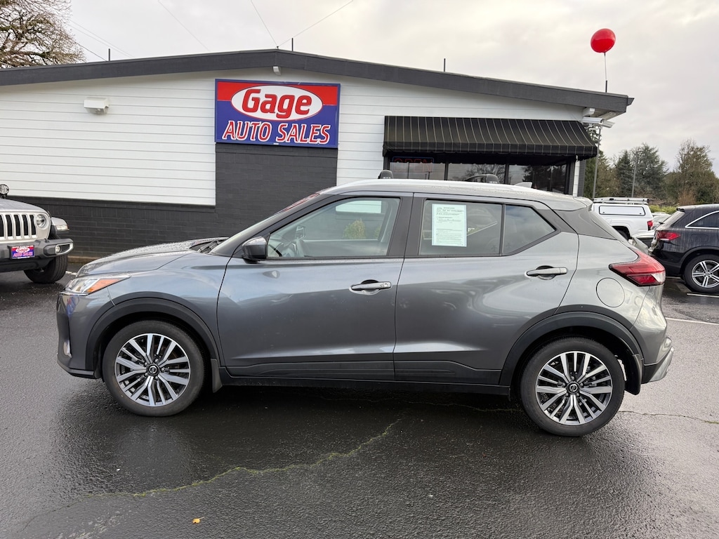 This 2021 Nissan Kicks SV 4dr Crossover is a reliable and efficient vehicle. It has a low mileage of 45,640 miles and is equipped with a 1.6 liter I4 122hp 114 lb-ft SULEV engine, direct injection, and FWD. The exterior is boulder gray pearl while the interior is charcoal. It has a crash test rating of 4 out of 5 stars and features such as touch screen display, Bluetooth audio connection, blind spot sensor, hill start assist, Apple Carplay ready, and Bluetooth phone connectivity. With fuel economy in city at 31 mpg and on highway at 36 mpg, this car is sure to provide you with an economical ride. A carfax report is also available for your convenience. Contact Details: Gage Auto Sales, 13432 SE McLoughlin Blvd., Milwaukie, OR, 97222, sales@gageauto.dealerspace.com, (888) 205-6257.