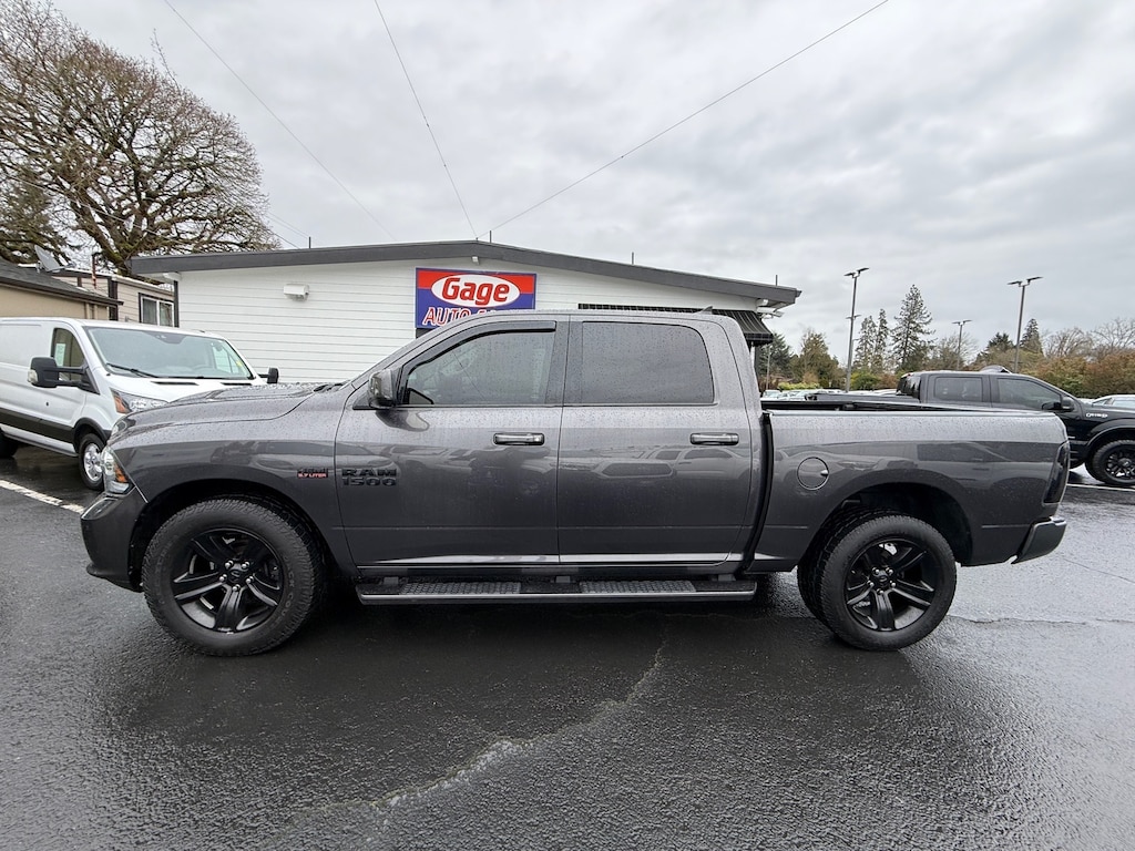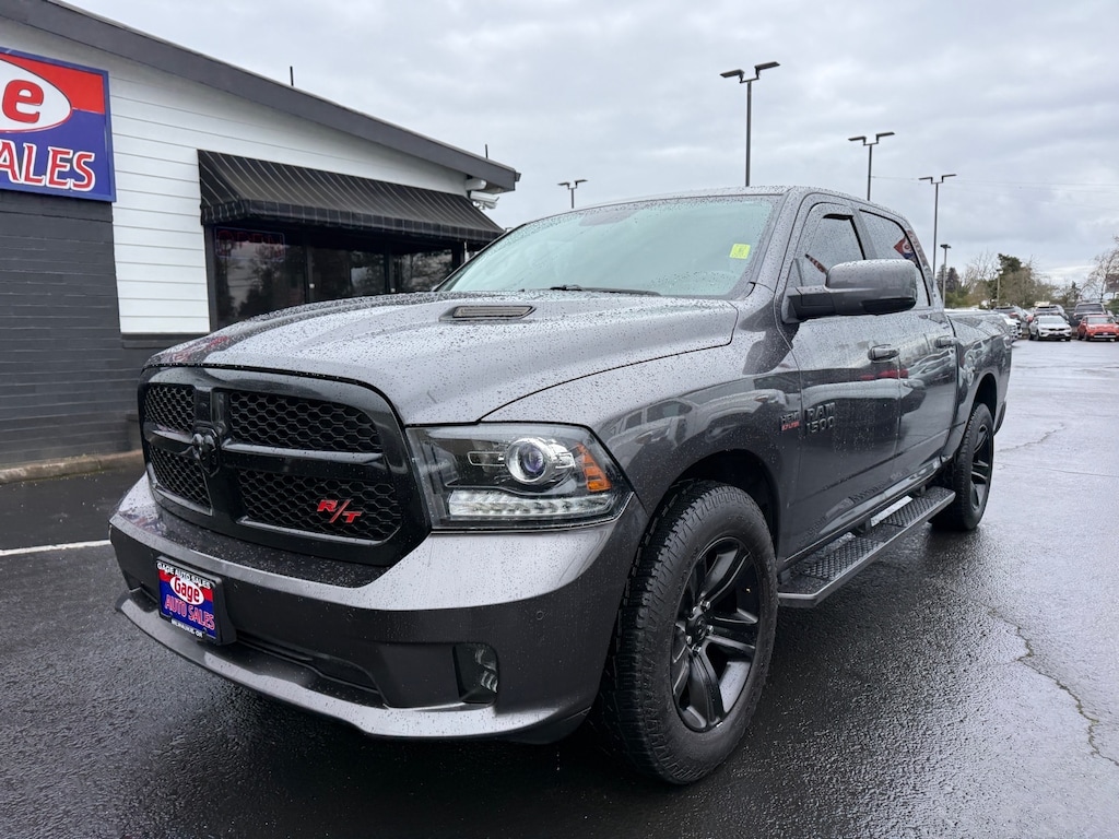 This 2017 RAM 1500 Night 4x4 Crew Cab Pickup is a reliable and powerful motorcar. With a 5.7 liter HEMI V8 395hp 410 lb-ft engine and sequential multiport fuel injection, it has a granite crystal metallic clear coat exterior that will turn heads. It has driven 117,132 miles and comes with a crash test rating of 4 out of 5 stars. The carfax report is available for review and features such as a touch screen display, Bluetooth audio connection, hill start assist, part time with on demand four wheel drive, leather trimmed bucket seats, parksense front and rear park assist, and Bluetooth phone connectivity are all included. With its fuel economy in city 15 mpg and fuel economy on highway 21 mpg, this car is sure to get you where you need to go in style. Contact Details: Gage Auto Sales, 13432 SE McLoughlin Blvd., Milwaukie, OR, 97222, sales@gageauto.dealerspace.com, (888) 205-6257.