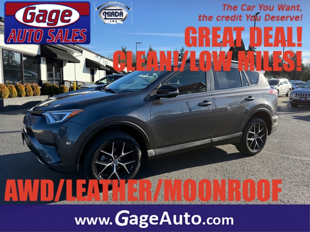 This vehicle is a 2018 Toyota RAV4 SE with low mileage of 62,769 miles. It is an all wheel drive with a 2.5 liter I4 176hp 172 lb-ft engine and sequential multiport fuel injection. It has a magnetic gray metallic exterior and a black interior. It has a crash test rating of 5 out of 5 stars and features such as touch screen display, Bluetooth audio connection, hill start assist, on demand four wheel drive, and leather seats. This car has an impressive fuel economy of 22 mpg in the city and 28 mpg on the highway, making it an ideal choice for those who are environmentally conscious. Additionally, it has been certified by Carfax with a clean carfax report available for review. With its low mileage, low price, and great features, this car is sure to make an impact on any car enthusiast's list! Contact Details: Gage Auto Sales, 13432 SE McLoughlin Blvd., Milwaukie, OR, 97222, sales@gageauto.dealerspace.com, (888) 205-6257.