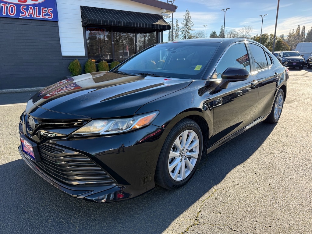 This vehicle is a 2019 Toyota Camry LE 4dr Sedan, with a carfax report available. It has been driven 110,929 miles and is equipped with a 2.5 liter I4 203hp 184 lb-ft engine, direct injection, and FWD. The exterior of the car is midnight black metallic, while the interior is black. It has an impressive fuel economy of 28 mpg in the city and 39 mpg on the highway, as well as a crash test rating of 5 out of 5 stars. Additionally, this car comes with many features such as touch screen display, Bluetooth audio connection, hill start assist, Apple Carplay ready, and Bluetooth phone connectivity. This car is sure to provide you with a reliable and comfortable ride! Contact Details: Gage Auto Sales, 13432 SE McLoughlin Blvd., Milwaukie, OR, 97222, sales@gageauto.dealerspace.com, (888) 205-6257.