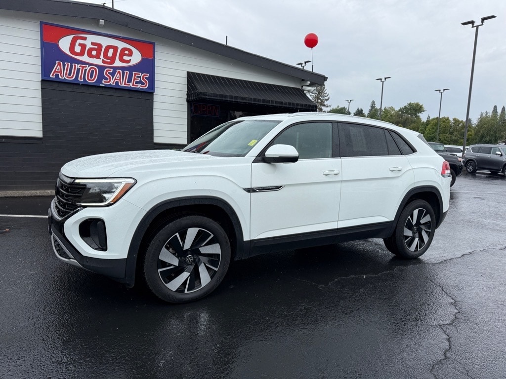 This vehicle is a 2024 Volkswagen Atlas Cross Sport SE 4Motion 4dr SUV w/Technology, making it one of the most advanced cars on the road today. It has a pure white exterior and a titan black interior, giving it a sleek and modern look. It has driven 25,097 miles and comes with a crash test rating of 5 out of 5 stars. It has all the modern features you would expect from a car of this caliber, including touch screen display, Bluetooth audio connection, blind spot sensor, hill start assist, center console with faux leather trim, full time four wheel drive, and Apple Carplay ready. It also has a fuel economy of 19 mpg in the city and 26 mpg on the highway. With a carfax report available, you can be sure that this car has been well maintained and is ready to take you wherever your journey may take you. Contact Details: Gage Auto Sales, 13432 SE McLoughlin Blvd., Milwaukie, OR, 97222, sales@gageauto.dealerspace.com, (888) 205-6257.