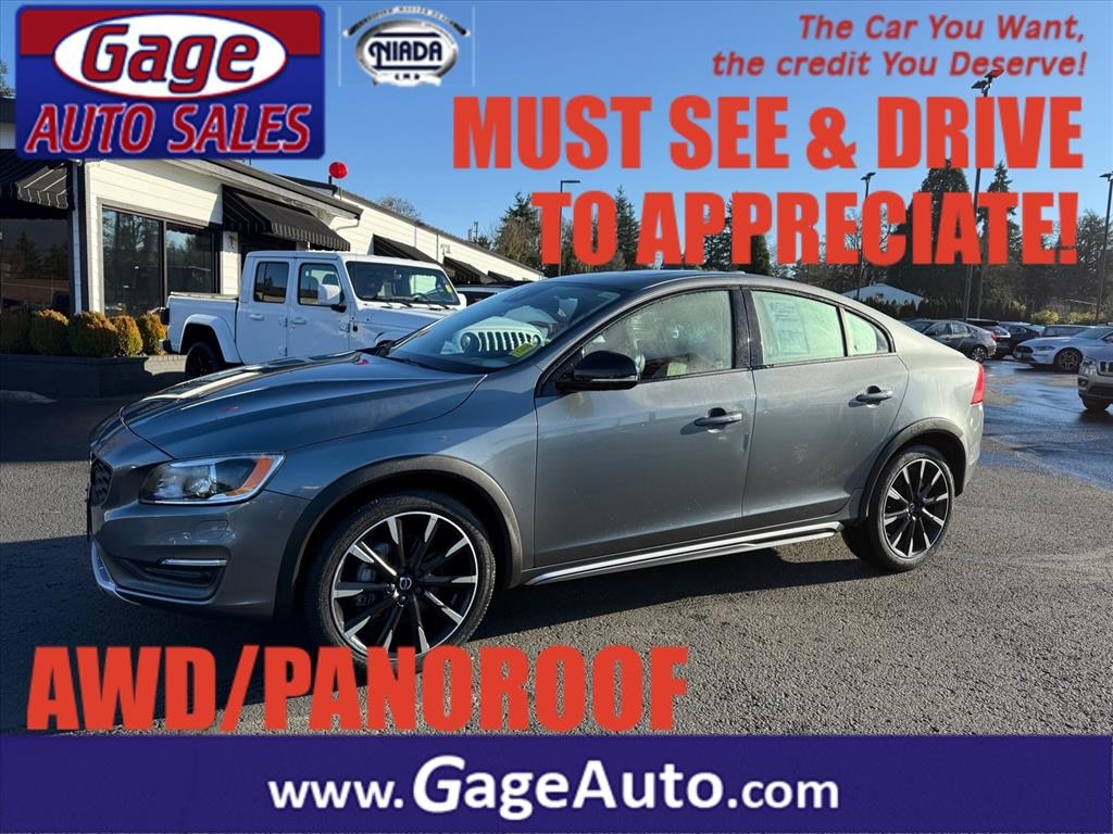 This vehicle is a 2016 Volvo S60 Cross Country T5 Platinum with low mileage of 34,080 miles. It is an all wheel drive vehicle with a 2.5 liter Turbo I5 250hp 266 lb-ft engine and direct injection. It has an osmium grey metallic exterior and an off black interior. Vehicle features include Bluetooth audio connection, hill start assist, full time four wheel drive, navigation system with voice recognition, Bluetooth phone connectivity, and leather seats. This car has an impressive fuel economy of 20 mpg in the city and 28 mpg on the highway. It is the perfect car for anyone looking for a reliable and efficient vehicle. Contact Details: Gage Auto Sales, 13432 SE McLoughlin Blvd., Milwaukie, OR, 97222, sales@gageauto.dealerspace.com, (888) 205-6257.